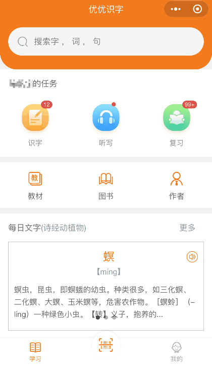 这个字的来源可能是搜索、今日文字、教材或者读过的书中来,选择加入学习任务,学习完成后,就会出现在复习界面。