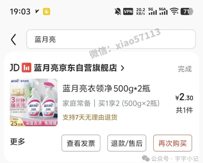 蓝月亮的衣领净2瓶2.3,当时原价是16,我看很多直播间都卖25.9。
