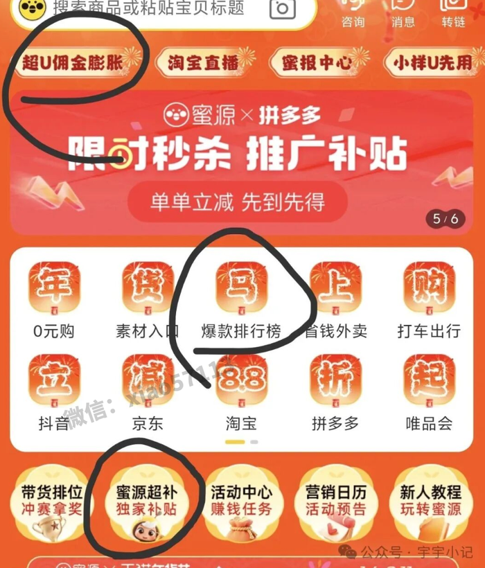 蜜源首页,爆款排行榜,蜜源超补,超u佣金膨胀也有很多优惠产品信息。